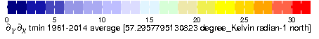 Convert units from 57.2957795130823 degree_Kelvin radian-1 north to