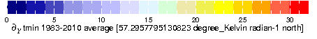 Convert units from 57.2957795130823 degree_Kelvin radian-1 north to
