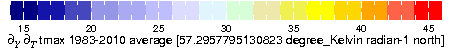 Convert units from 57.2957795130823 degree_Kelvin radian-1 north to