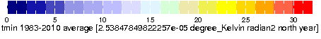 2.53847849822257×10-05 degree_Kelvin radian2 north year