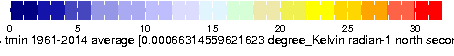 0.00066314559621623 degree_Kelvin radian-1 north second-1