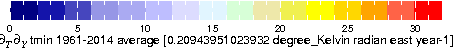 Convert units from 0.20943951023932 degree_Kelvin radian east year-1 to